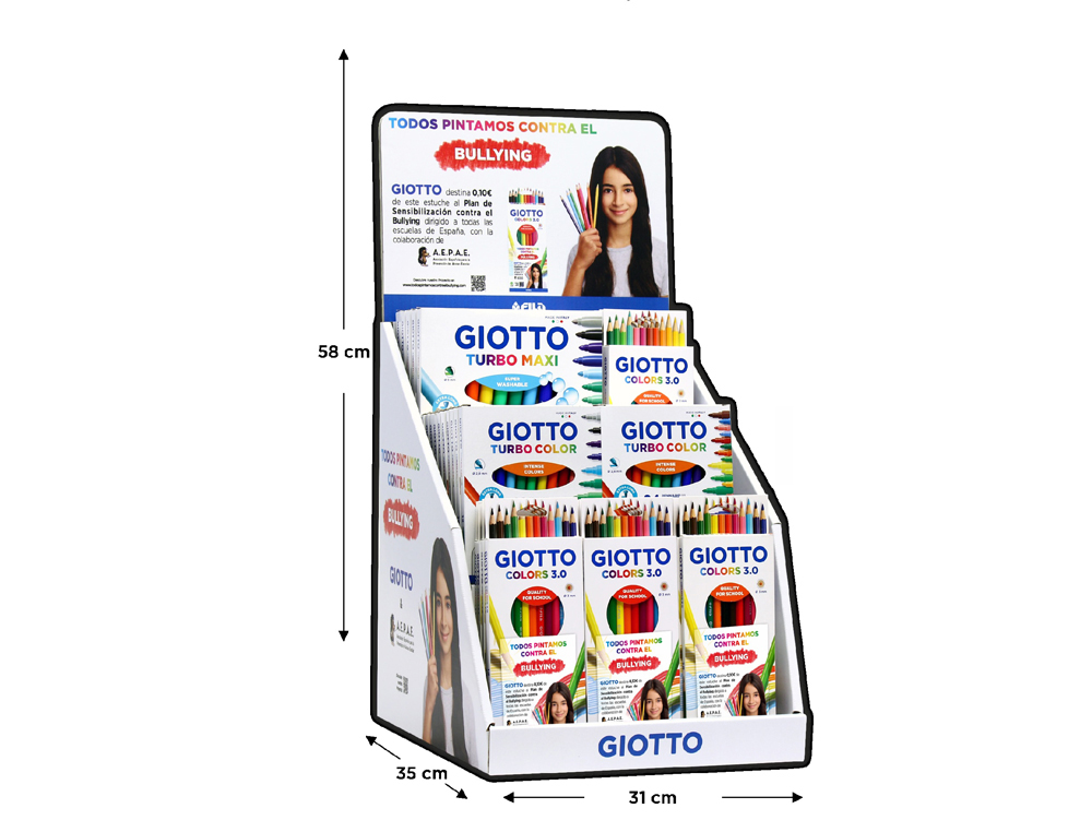 O Expositor de Mesa da Coleção GIOTTO CANDY é um expositor de cartão prático e compacto que se integra perfeitamente em qualquer ponto de venda. Concebido especificamente para exibir a vibrante e colorida variedade de produtos da coleção CANDY da GIOTTO, este expositor não só facilita a acessibilidade, como também chama a atenção com o seu design apelativo.
