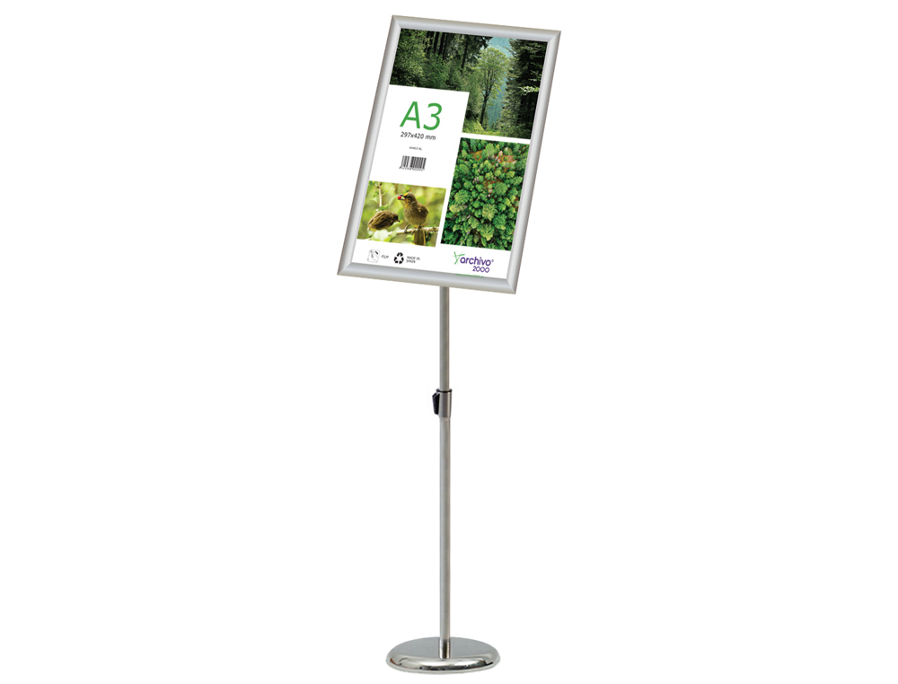 Este púlpito de exposição independente ARCHIVO 2000, com estrutura em alumínio, combina funcionalidade, durabilidade e elegância. É ideal para ambientes onde é necessária uma apresentação profissional e organizada de documentos ou informação gráfica. O seu design com altura ajustável e o sistema Snap Frame fácil de abrir permitem uma rápida colocação e troca de conteúdos, garantindo sempre uma exibição clara e eficaz.